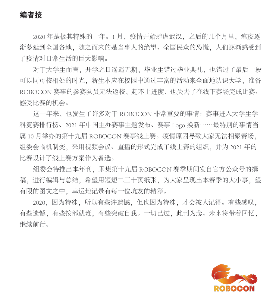 在严峻的疫情形势下,组委会通过调整规则和制定方案,于8月下旬成功举办机器马术“仿真赛”,共有36支队伍参赛;于12月下旬举办了ROBOCON绿茵争锋线上赛,共有75支队伍参赛,为克服困难坚持备赛的参赛师生提供竞技展示的舞台,也为2021 ABU ROBOCON的组织积累了线上办赛经验。这在ABU的各个成员国是唯一的,在ROBOCON历史上也是一次突破性的尝试!