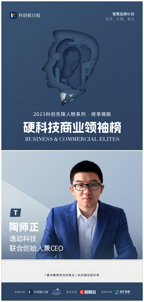 近日,一级市场及科创板领域权威媒体《科创板日报》重磅发布“2023 科创先锋人物”系列榜单。其中,逸动科技联合创始人兼 CEO 陶师正入选“硬科技商业领袖榜”。2023 科创先锋人物榜单由《科创板日报》联合上海科学技术情报研究所(ISTIS)发起,星矿数据提供支持,覆盖芯片半导体、创新医疗、数字经济、高端制造、新能源、新材料、元宇宙、人工智能等新兴产业。参评者所在企业均是科创领域技术先导型企业,具备关键核心技术及强大自主创新能力,对产业转型升级及技术全球化合作有着深远影响。历时 5 个月,共产生 4 大榜单及 75 位科创先锋人物,其中硬科技商业领袖 25 位。