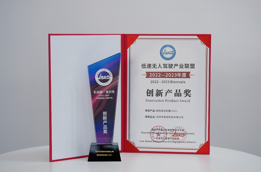 12月14日晚,“新战略·金石奖 | 2022-2023低速无人驾驶行业双年度评选颁奖典礼”在观澜湖高尔夫球会·东莞国际会议中心隆重举行!“新战略·金石奖”评选活动由低速无人驾驶产业联盟主办,旨在树立行业标杆,向全行业推广低速无人驾驶创新技术、典型案例、成功经验等。普渡商用清洁机器人CC1从一众参评产品中脱颖而出,成功获得创新产品奖。